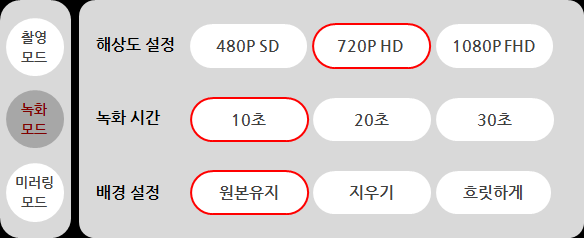 가이드라인에 맞춰 정면을 보고 선 뒤, 카메라 버튼을 누르면 촬영이 시작돼요.얼굴의 모든 방향이 촬영되도록 10초 동안 천천히 회전해주세요.
